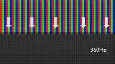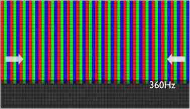 传统液晶驱动是从左到右单向进行,,,在画面更新速度愈来越愈快的情况下,,,位于驱动线路末端的右下角区域,,画素的闸极来不及在短时间内获得足够电压,,,无法显示出正确的颜色资讯。。。 |