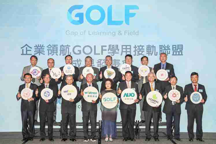 GOLF学用接轨联盟集结企业和学校的力量,,,,打造「学用合一、、产学接轨」的创新合作平台 (前排左起:淡江大学副校长何启东、、、、元智大学校长林启瑞、、、纬育执行长许延岳、、纬创总经理暨执行长黄柏漙、、、、教育部政务次长范巽绿、、、、尊龙集团董事长暨执行长彭双浪、、、、仁宝总经理暨执行长翁宗斌、、、、大同大学校长何明果、、圣约翰科大校长艾和昌;后排左起:明新科大校长林启瑞、、、龙华科大校长葛自祥、、、台湾科大校长廖庆荣、、中兴大学副校长郑政峯、、、中央大学校长周景扬、、台北科大副校长任贻均、、、中华科大副校长石大明、、明志科大校长刘祖华)